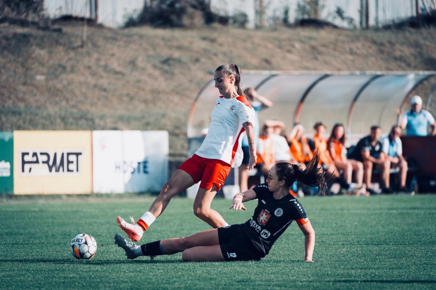 Od letošní sezóny fotbalistky FC Hradec Králové vede z pozice kapitánky ANETA VEJROVÁ. Třiadvacetiletá studentka medicíny, která si zahrála první ligu v Pardubicích a na kontě má starty v mládežnických reprezentacích, byla pilířem zadních řad v super úspěšném podzimu, kdy tým ve druhé lize vyhrál jedenáct utkání z dvanácti. V tabulce je ovšem druhý o tři body za pražskými Raptors, s nimiž se na jaře hodlá poprat o postup do nejvyšší soutěže.