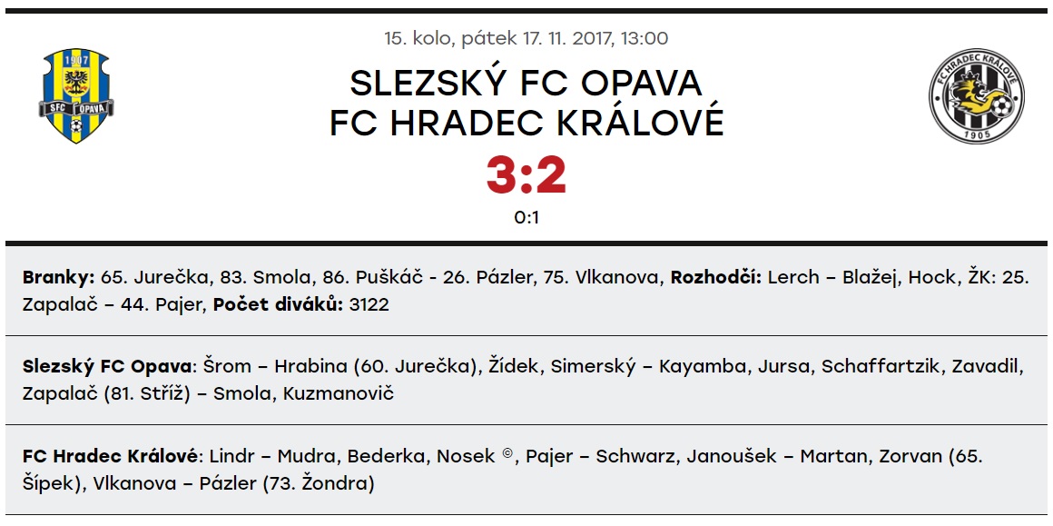 Slezský SFC prohrál v sezoně pouhé tři zápasy, vždy to bylo na venkovních stadionech, v Českých Budějovicích, ve Znojmě a v Příbrami. Poslední tři duely skončily shodně, remízou 1:1. Na podzim dopadlo vzájemné střetnutí ofenzivní podívanou, po které byli šťastnější přeci jen domácí.