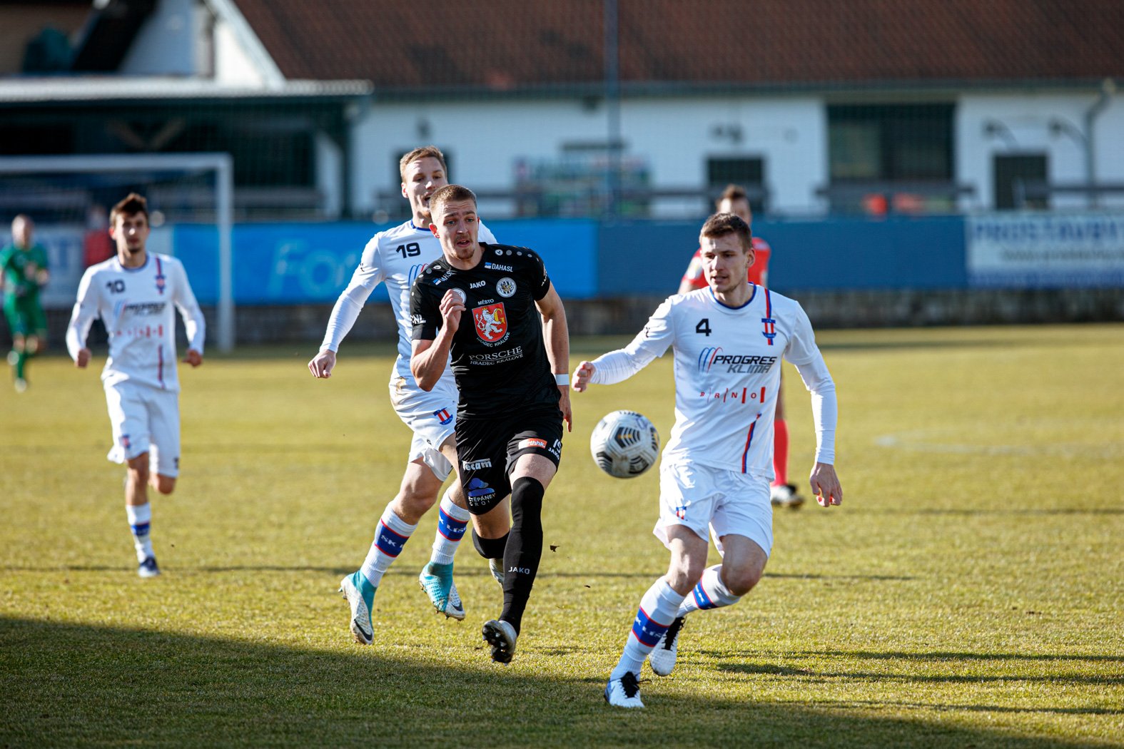 Hradečtí mohli odpovědět o osm minut později. Na dlouhý míč za obranu si naběhl Daniel Vašulín, obešel vyběhnuvšího Vlastimila Veselého, ale jeden ze stoperů se stihl vrátit a balon mu ukopl. Po povedené akci Adama Vlkanovy a Filipa Novotného střílel u pravé tyče z voleje úplně volný Erik Prekop, ale bránu netrefil.
