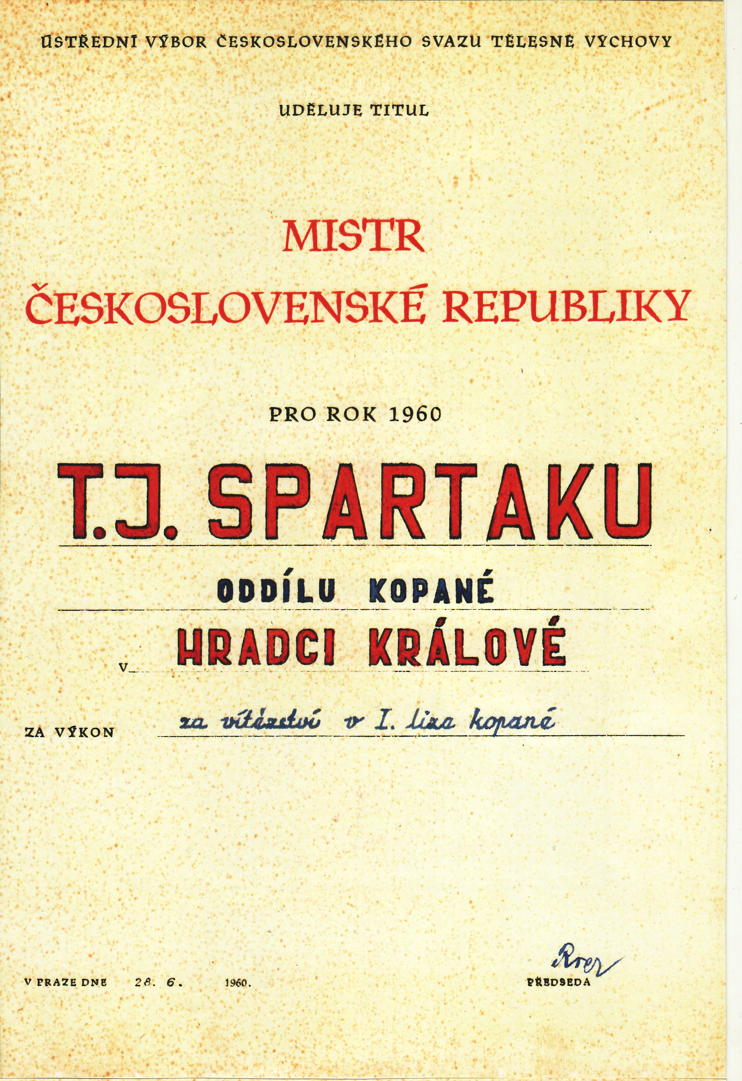 „Úspěch vidím především v kázni mužstva a v jeho poctivé přípravě na všechna ligová utkání. Již dvanáct let trénuji různá mužstva, ale tak dobrý kolektiv jako právě v Hradci jsem neviděl. A v tom je základ našeho nečekaného úspěchu. Abych se přiznal, s prvním místem jsme na začátku sezony vůbec nepočítali. Říkali jsme si, že je potřeba udržet alespoň to čestné páté místo, na němž jsme přezimovali. Když se nám však počalo dařit a pětibodový náskok pražské Dukly se počal snižovat, začal jsem počítat. Se mnou počítali i hráči. Nu a řekli jsme si, stojí to za to, pokusit se o získání titulu. A to se nám vskutku podařilo.“