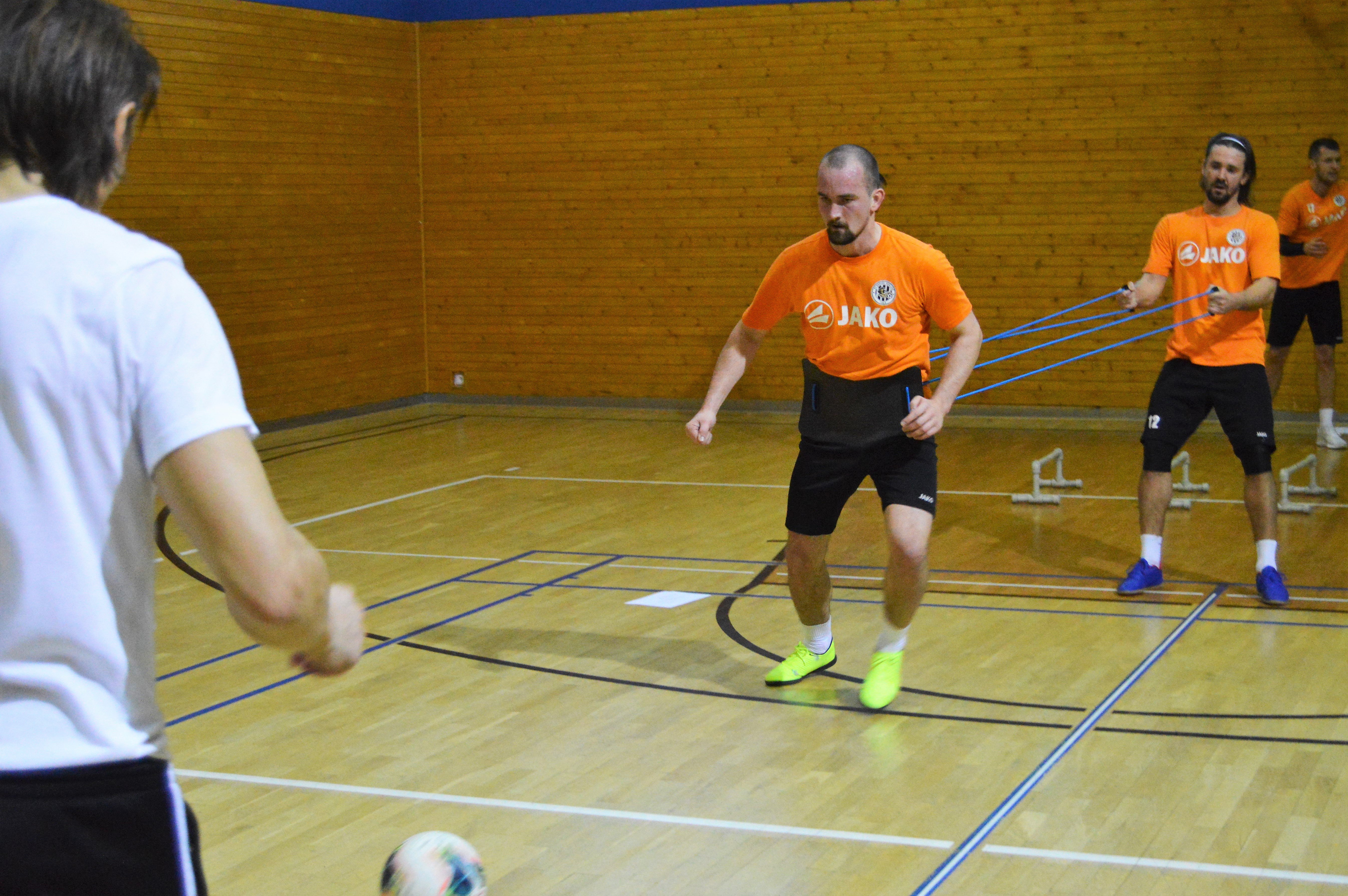 Odpoledne jsme měli kruhový trénink v hale zaměřený na dynamiku, odraz i nějakou techniku s míčem. U toho jsme se zapotili, pak přišly soutěže a bago, u toho byla i zábava. Byli jsme rozdělení na staré a mladé, to je vždycky vyhrocené. Staří vyhráli, oslavili jsme to, aby si to mladí vyžrali až do dna. Hráli jsme o obsluhu při jídle na celý víkend, tam si je taky vychutnáme. Já jsem si vybral Roba Jukla, Vlčák Kubu Martince – s nimi sedíme u stolu, tak se necháme obskakovat.