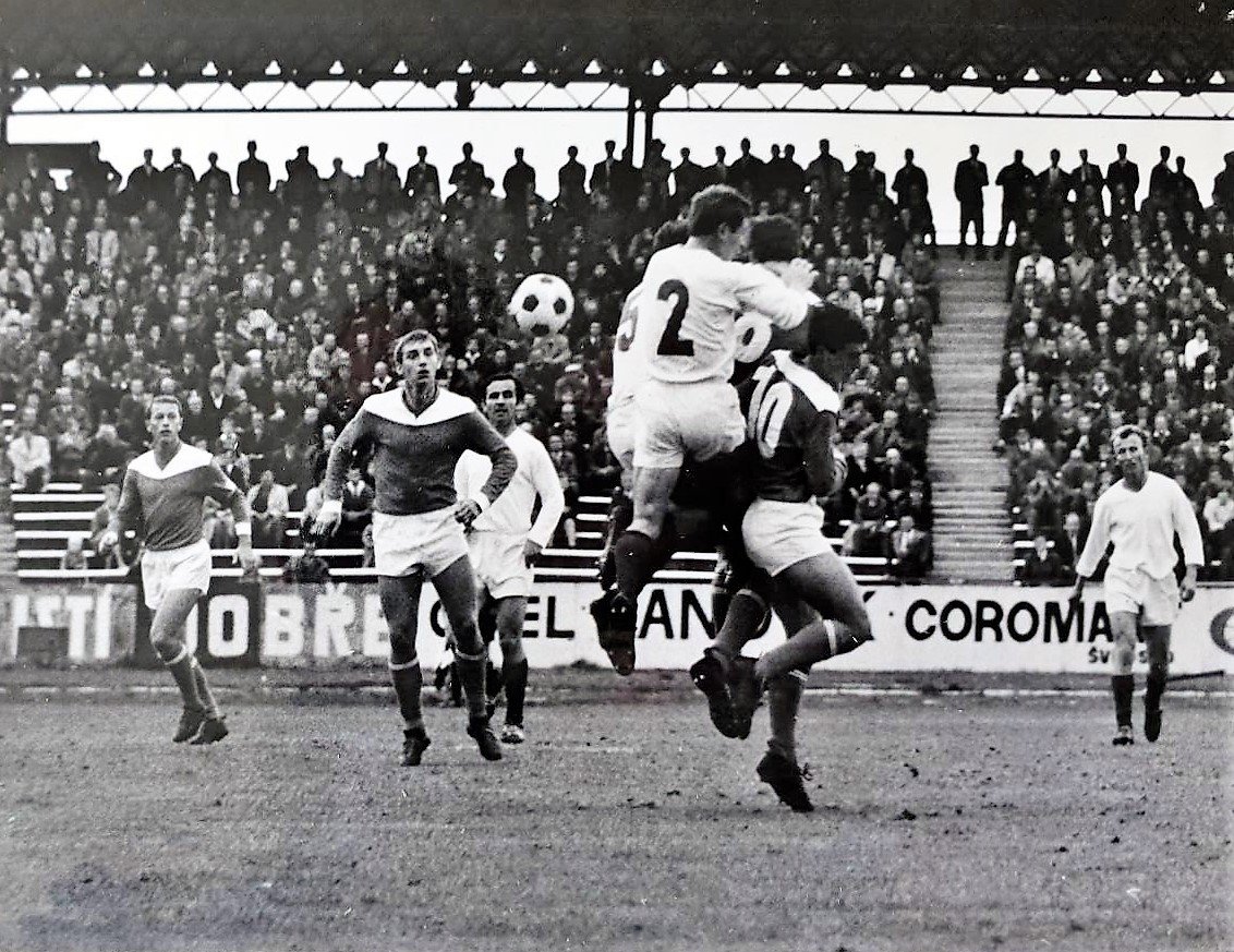 Snímek ze zápasu Spartak Hradec Králové – Spartak Vlašim ze sezony 1967/1968. Votroci prohráli 1:3 a nepomohly jim ani zbrusu nové modrobílé dresy.