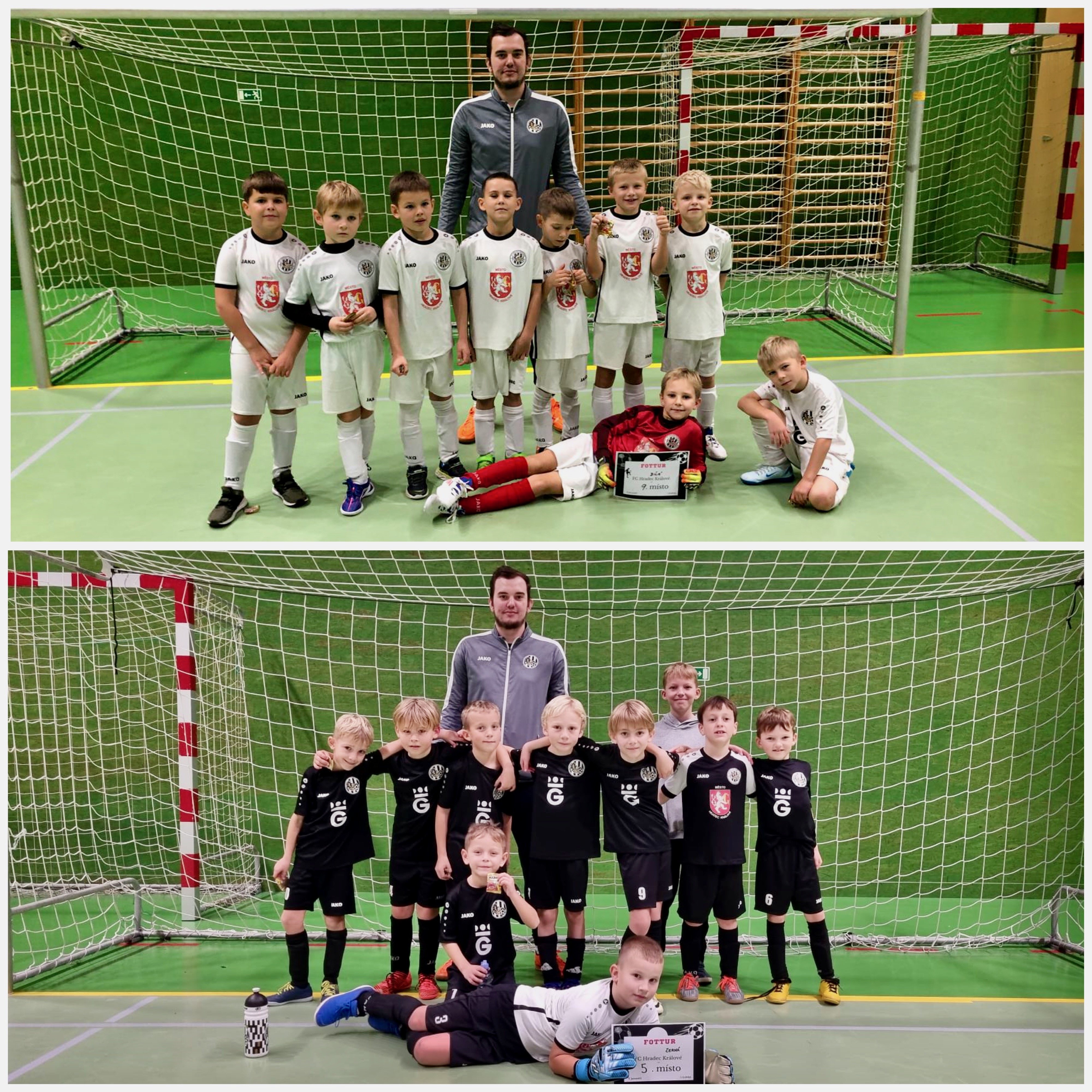 Za neúčasti trenérů Kurala a Laše, kteří trávili celý víkend v učebnách ZŠ Sever, kde procházeli kurzem trenérské C-licence, vedl statečně trenér Píro naše 2 týmy turnajem v Jaroměři, který jsme odehráli proti o rok starším soupeřům. V některých týmech soupeřů hráči dokonce pravidelně nastupují za starší přípravku. Rozdíl ve vzrůstu, rychlosti a důrazu byl zřejmý. Co naši kluci ztráceli na fyzické vyspěloti a herních zkušenostech, to nahrazovali bojovností, nebojácností a nasazením. Často jsme viděli nahrávky a je vidět, že se tímhle směrem vnímání hry posouváme dál a dál. Tato činnost byla obzvláště vidět v posledním zápase o umístění, kdy černý tým zachoval pevné nervy a došel si po napínavém penaltovém rozstřelu pro celkové páté místo.