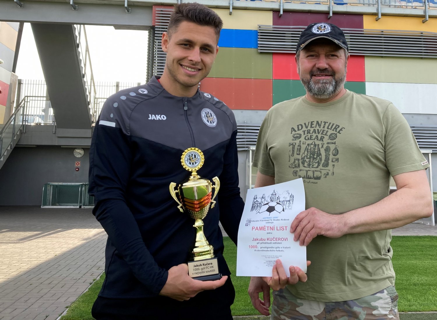 Střelec jubilejní branky, Jakub Kučera, byl nyní oceněn klubem FC Hradec Králové i zástupci fan-klubu Votroci 2000, za které mu ocenění předal jejich předseda – Jan Koutouček.