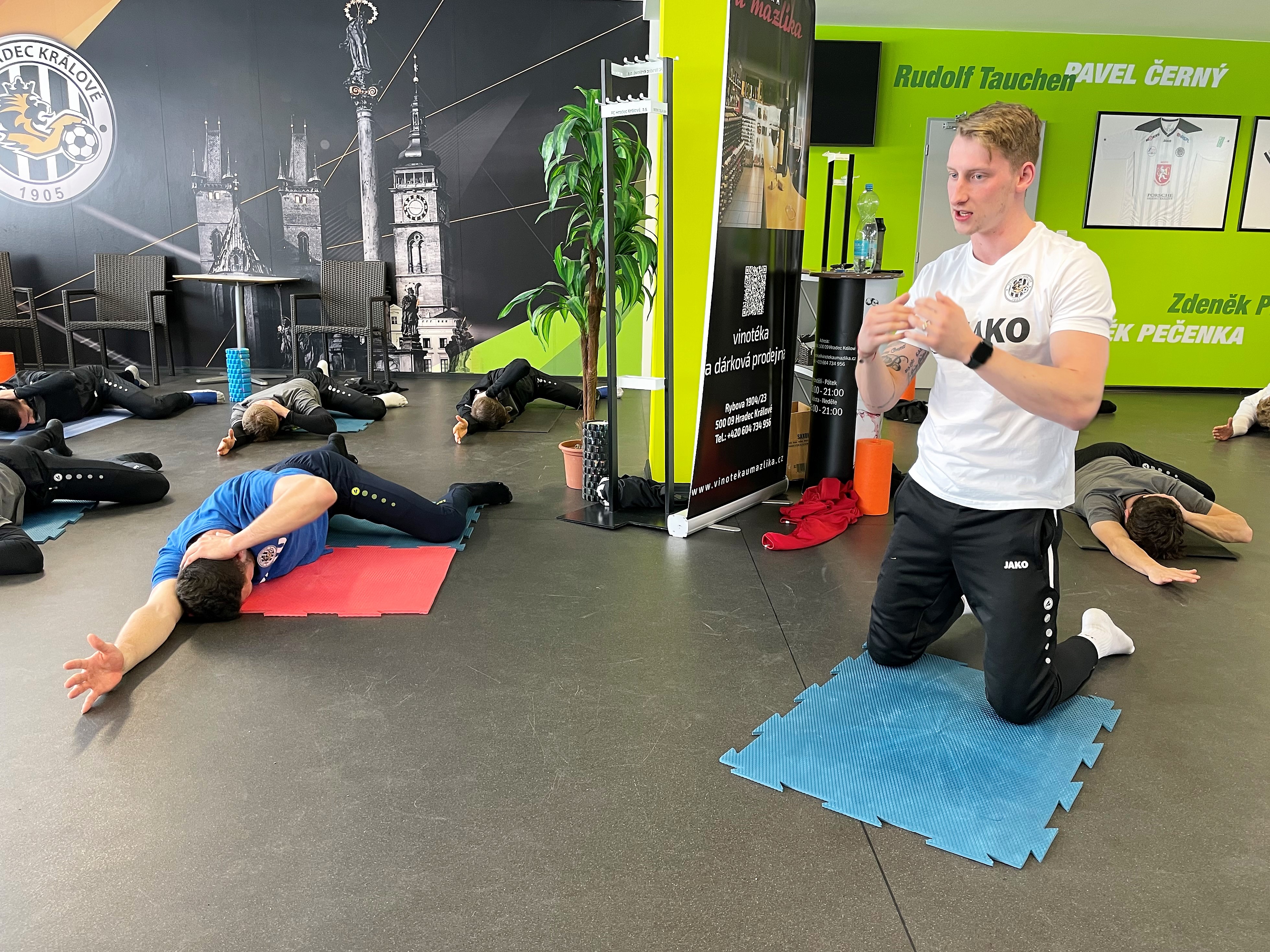 Upřímně hrozně dobře, protože vesměs tady jsou mladí hráči, kteří vědí, jakým směrem se fotbal ubírá. Daleko větší roli začíná hrát síla – vidíš třeba u Goretzky z Bayernu, jak narostl. Kluci tedy nové věci v silovém tréninku dost vítají. Pokud jde o rutiny před tréninkem, to zatím slaďujeme. Pracujeme na aktivacích, na mobilizačních cvičeních určených na dosažení co největšího rozsahu pohybu. Kluci reagují hrozně dobře.