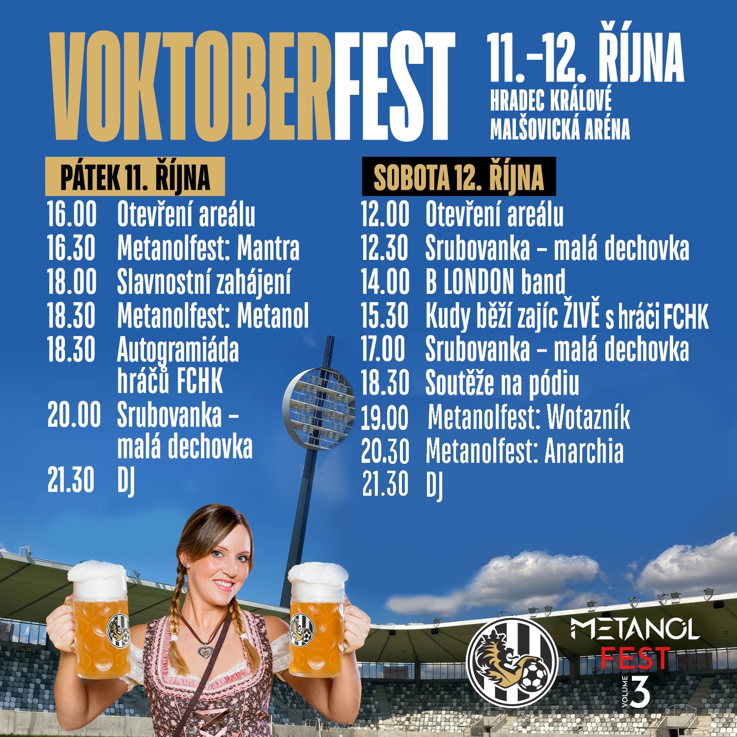 Kromě jednoho z nejoblíbenějších sportovních podcastů vystoupí živě i řada kapel – malá dechovka Srubovanka, která zahraje také typickou oktoberfestovou muziku, ale i rocková kapela Metanol, která je autorem hymny královéhradeckého fotbalového klubu.