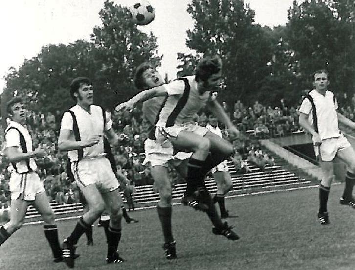 12./ Už v celostátní druhé lize se oba soupeři potkali v pátek 26. září 1969. Za krásného podzimního dne, před zraky televizních kamer, vidělo 5000 diváků pro Spartak nešťastný zápas. V sestavě: Oplt – Fišer, Cerman, Huml, Moník – Plocek, Franc – Hřebec, Barták, Schmidt, Zikán měl po celý první poločas převahu. Ale ve 20. minutě zaspali hradečtí obránci a Jirousek hlavou vstřelil vedoucí branku. Ve 33. minutě se zranil Oplt, nahradil ho Jindra a v téže minutě, aniž si sáhl na míč, dostal druhou branku. Druhý poločas začal Spartak náporem a Hřebec hlavou snížil. Patnáct minut před koncem se naskytla obrovská příležitost na vyrovnání. Plocek pokutový kop střílet nechtěl, tak se této úlohy ujal Barták a penaltu neproměnil. V řadách hradeckých fanoušků vládl smutek, mužstvo hrálo dobře, vítězství by znamenalo vedení v tabulce…