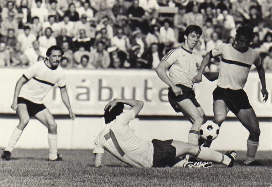 Ve druhém kvalifikačním utkání v Teplicích v roce 1980 se Hradec představil v bílých dresech s černým vodorovným pruhem uprostřed a v černých trenýrkách. V tomto dresu už potom nikdy nehrál.