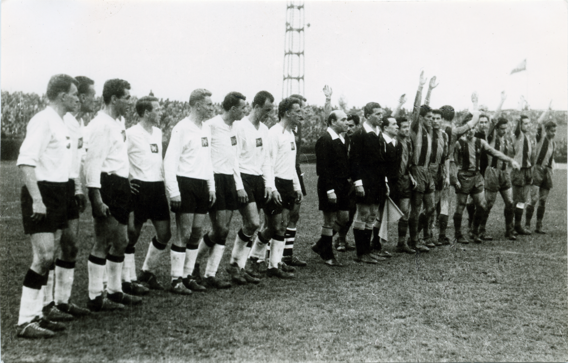 Za protektorátu zřejmě černé tričko příliš vhodné nebylo. SK Hradec nastupoval převážně v bílém triku se znakem, nebo v různých jednobarevných variantách. Jen v roce 1943 se podařilo vybočit ze stereotypu a Hradec nastoupil v černém tričku se dvěma bílými vodorovnými pruhy. K tomu bílé trenýrky a černobílé podkolenky. Nádhera.