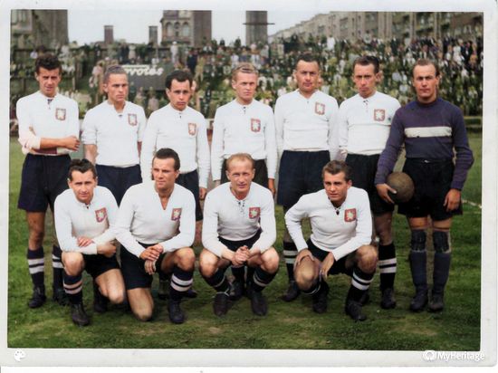 Po válce, ve slavném zápase 14. června 1945 na Letné se Spartou, nastoupili hradečtí v bílých dresech a černých trenýrkách. Na levé straně znak Hradce.