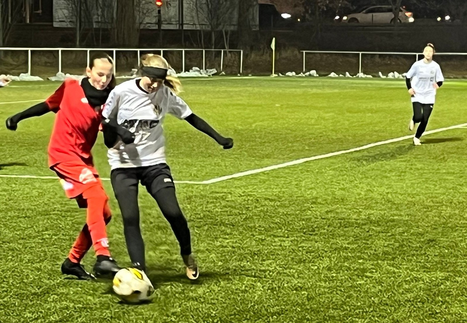 Starší žákyně FC Hradec Králové absolvovaly svůj první letošní přípravný zápas pod „širým nebem“. Na umělé trávě hradecké Slavie se utkaly s týmem FK Pardubice. Pro sedm našich děvčat ročníku 2012 to byla zároveň premiéra ve vyšší kategorii a na velkém hřišti. První poločas zápasu byl ve znamení mírné převahy pardubického týmu, který dívkám našich sousedů přinesl jednobrankové vedení. Na naší hře se v této části zápasu projevila mírná nervozita a také nesehranost vzhledem k velké obměně týmu.