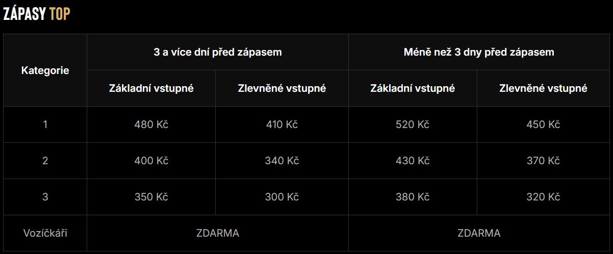 Ceny vstupenek – sezóna 2025/26