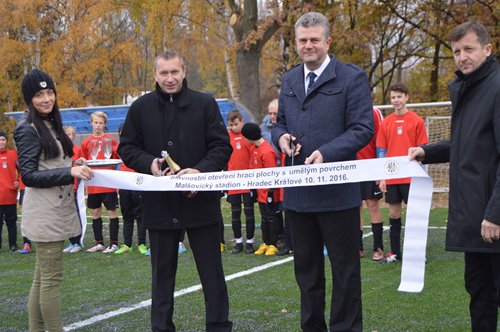 Čtvrteční dopoledne bylo na Malšovickém stadionu vyhrazeno pro slavnostní akt. Po zhruba šestitýdenní přestavbě se fotbalistům představila nová tréninková hrací plocha s umělým povrchem poslední generace. Pásku přestřihl náměstek primátora pan PaedDr. Jindřich Vedlich, Ph.D. a místopředseda představenstva FC Hradec Králové Ing. Richard Jukl. První, kdo na nový trávník vyběhl k fotbalovému zápasu, byly jedenáctky základních škol Sever a Milady Horákové.