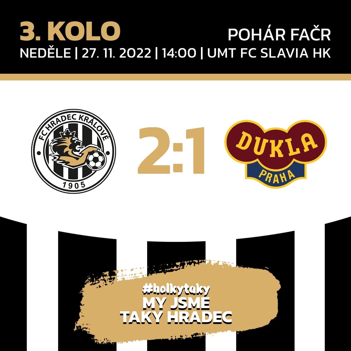 Ženy – Pohár FAČR (osmifinále): FC Hradec Králové – FK Dukla Praha 2:1 (Slavia HK) br.: Kovářová, Sedláčková