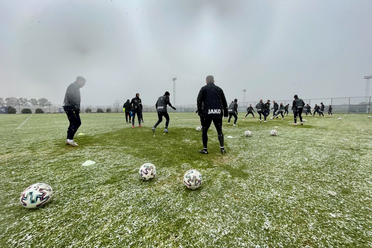 Ráno nás opět přivítal sníh, správcům na hřišti se úplně moc nelíbilo, že jdeme trénovat na hřiště, ale trenér si stál za svým. Část tréninku jsme stejně odbyli na trávníku vedle hrací plochy, a když jsme se přesunuli na ni, sníh už stačil roztát. A hřiště jsou tady tvrdší, takže se to nestihlo nijak rozbít. Turci tady nejsou na sníh zvyklí, a tak je legrační, že ho berou skoro jako katastrofu. Přitom to dnes byl jen takový poprašek, jako když trochu zaprší.