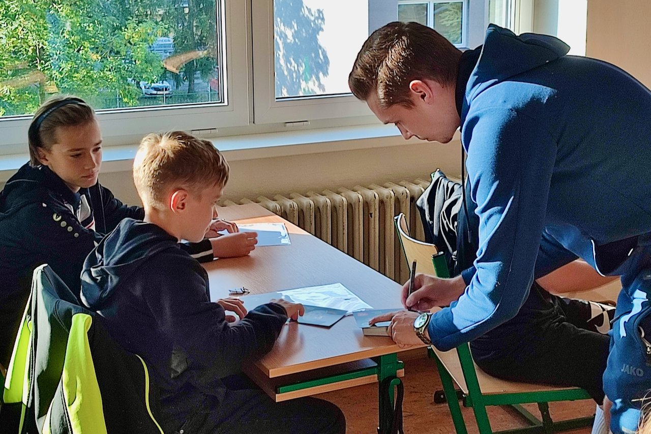 Jako každý rok, i letos přivítali školáky na ZŠ Sever v lavicích kromě pedagogů i Votroci. Otto Urma s Davidem Doležalem prošli spolu se šéftrenérem žáků Martinem Štěpánem čtyři sportovní třídy, rozdali podpisy na kartičky a popřáli klukům a holkám úspěšné vykročení do nového školního roku. „A ať se vám daří i na hřišti. S některými z vás se za dva tři roky můžeme potkat i v kabině jako se spoluhráči,“ usmíval se starší z dvojice na deváťáky.