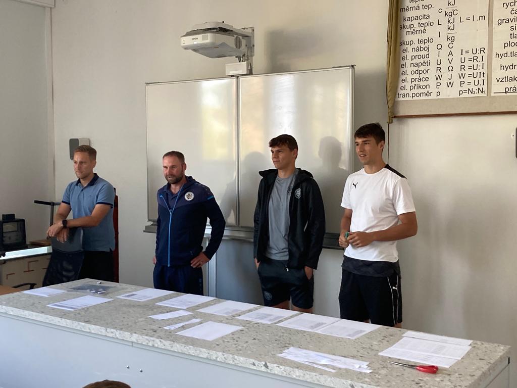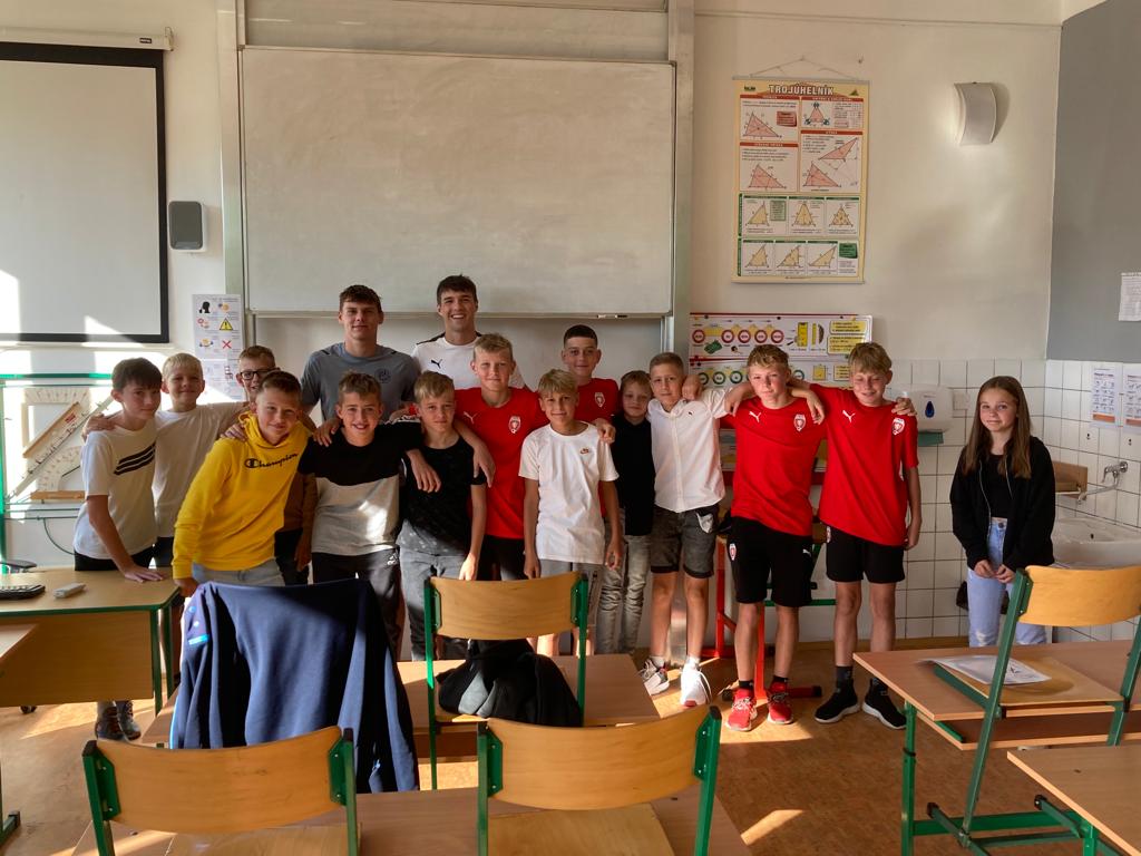 Jako už tradičně přišli hráči A-týmu Hradce popřát žákům mnoho sportovních i studijních úspěchů. Šéftrenér žákovských kategorií, Martin Štěpán, doprovodil Daniela Kutíka a Adama Gabriela do čtyř tříd, kde se fotbalisté Votroků s žáky vyfotili a podepsali se jim na různé předměty. Úsměvný moment vyvolal jeden jinak jistě velice pečlivý žák, který dvacet minut po osmé ranní již postrádal svůj rozvrh, na který by jinak mohl cenný podpis získat.