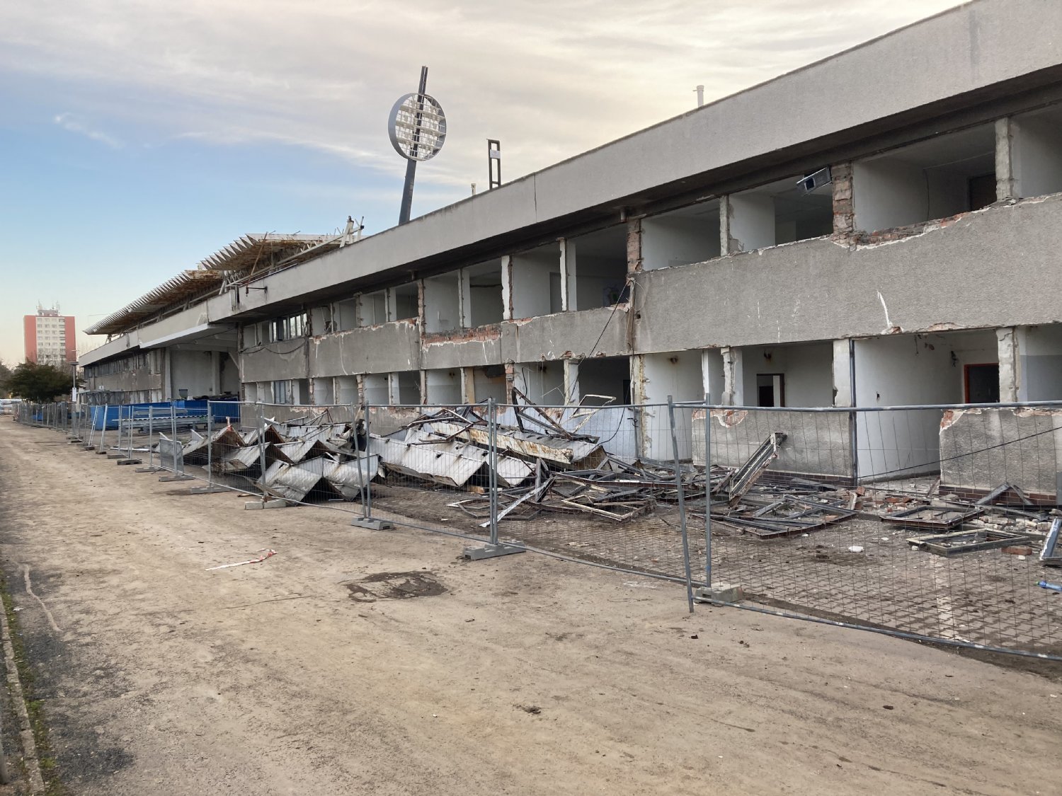 Harmonogram odstranění zbývající části starého stadionu nastiňuje Daniel Novotný. „Mělo by nám to zabrat asi měsíc a půl, plus mínus nějaký ten den. Donedávna jsme prostory uvnitř staré tribuny vyklízeli a nyní jsme začali s demontáží střechy,“ vysvětluje manažer stavby nové multifunkční arény.