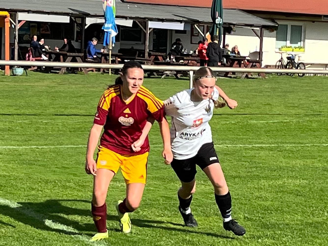 Hned od prvních minut se do svých soupeřek pustily s nasazením a velmi dobrou kombinační hrou. Velmi brzy se tak začaly rodit i brankové příležitosti. Změnu skóre ve prospěch domácích hráček však přinesly až závěrečné minuty před přestávkou. Ve 38. minutě do prázdné branky po chybě brankářky zakončovala Sarah Langmajerová a o dvě minuty později se po rohovém kopu prosadila Noemi Burešová.