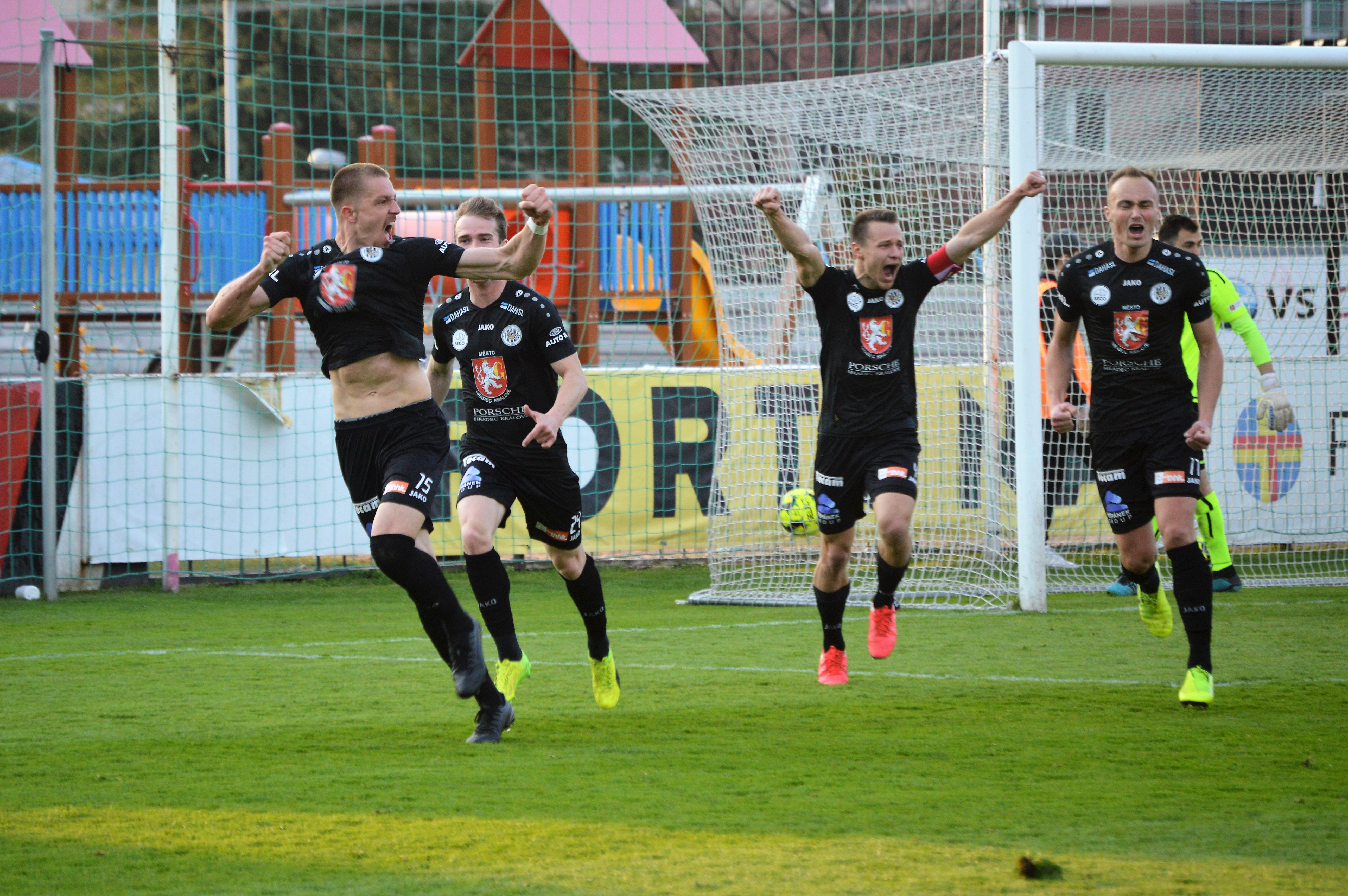 Hradečtí se snažili o vyrovnání. Nebezpečný míč vracel do šestnáctky Pavel Dvořák, gólman Zíma byl však pozorný a včas zasáhl. Pak slušnou pozici připravil Adam Vlkanova pro Petra Kodeše. Jeho pumelice měla dobré parametry, ale chyběla větší přesnost.