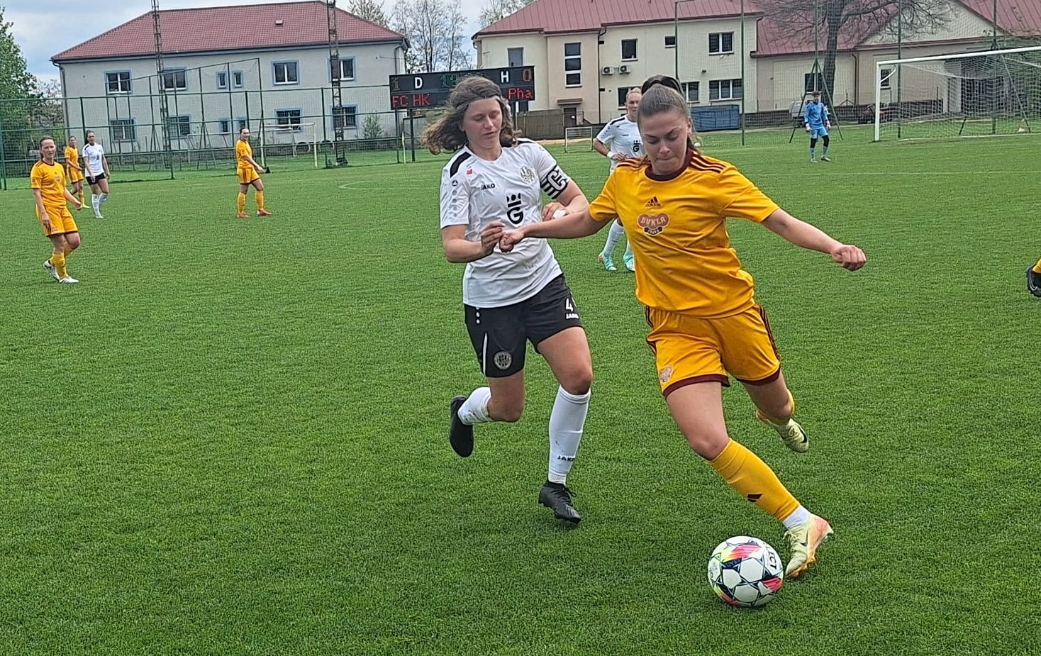 Od začátku zápasy Duklu zatlačily a již po pěti minutách po krásné akci Evy Chocholoušové se střelecky prosadila kapitánka Tereza Portychová. Hradecký tým měl převahu, ale z řady šancí se ujala až po hodině hry střela Evy Chocholoušové a o vítězi a stvrzení postupu bylo jasno.