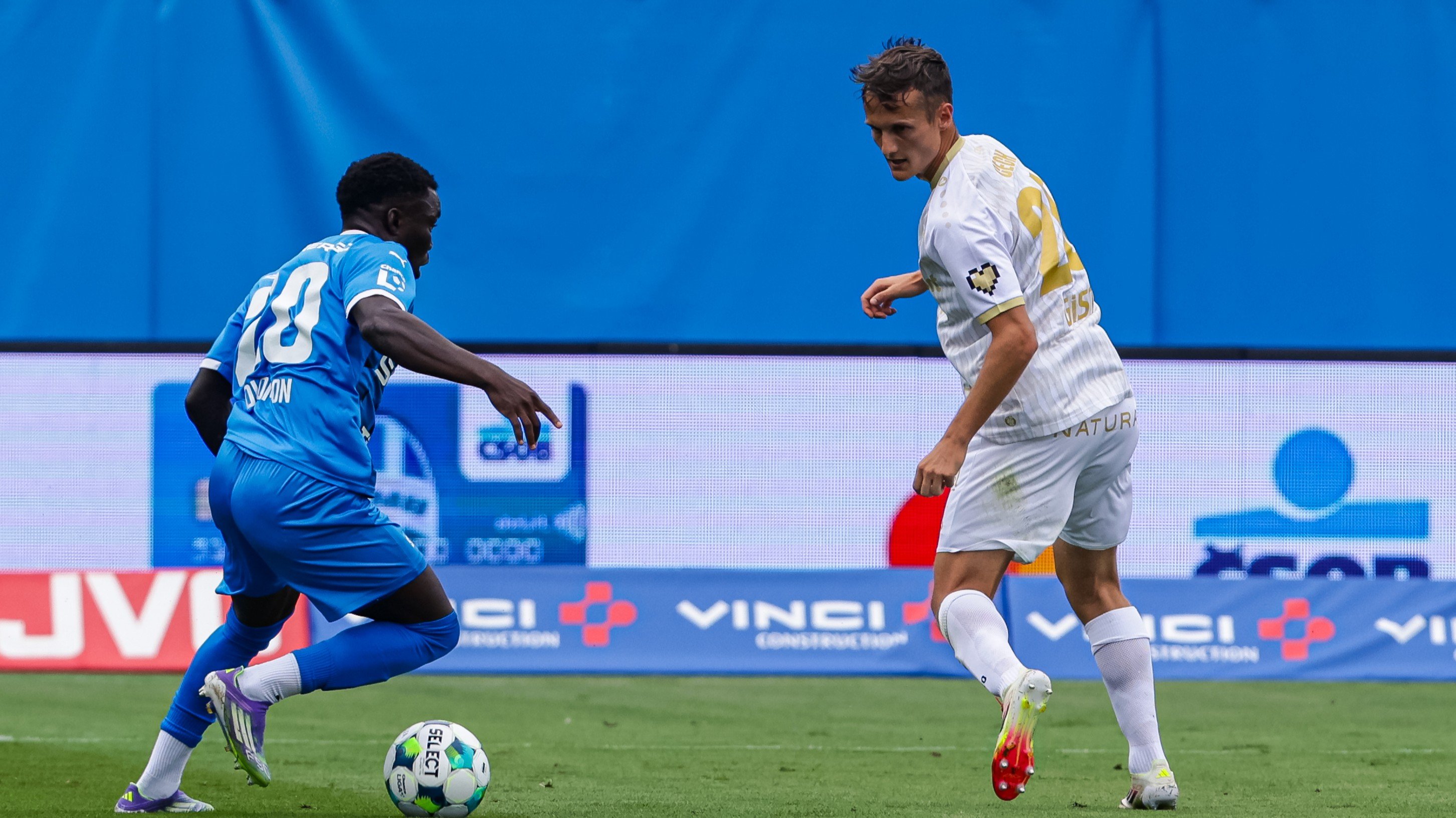 Jenže černobílá radost trvala pouhou minutu. Nigerijec Solomon John hned po rozehrávce opět nastartoval své rychlé nohy, přes několik hráčů se zleva prodribloval na střed hřiště a vyslal dalekonosný projektil do pravé šibenice Zadražilovy brány – 2:1 pro domácí. Žádná vyložená šance se už ani na jedné straně neodehrála, a Horejšova družina tak odcházela do šaten s jednogólovým mankem.