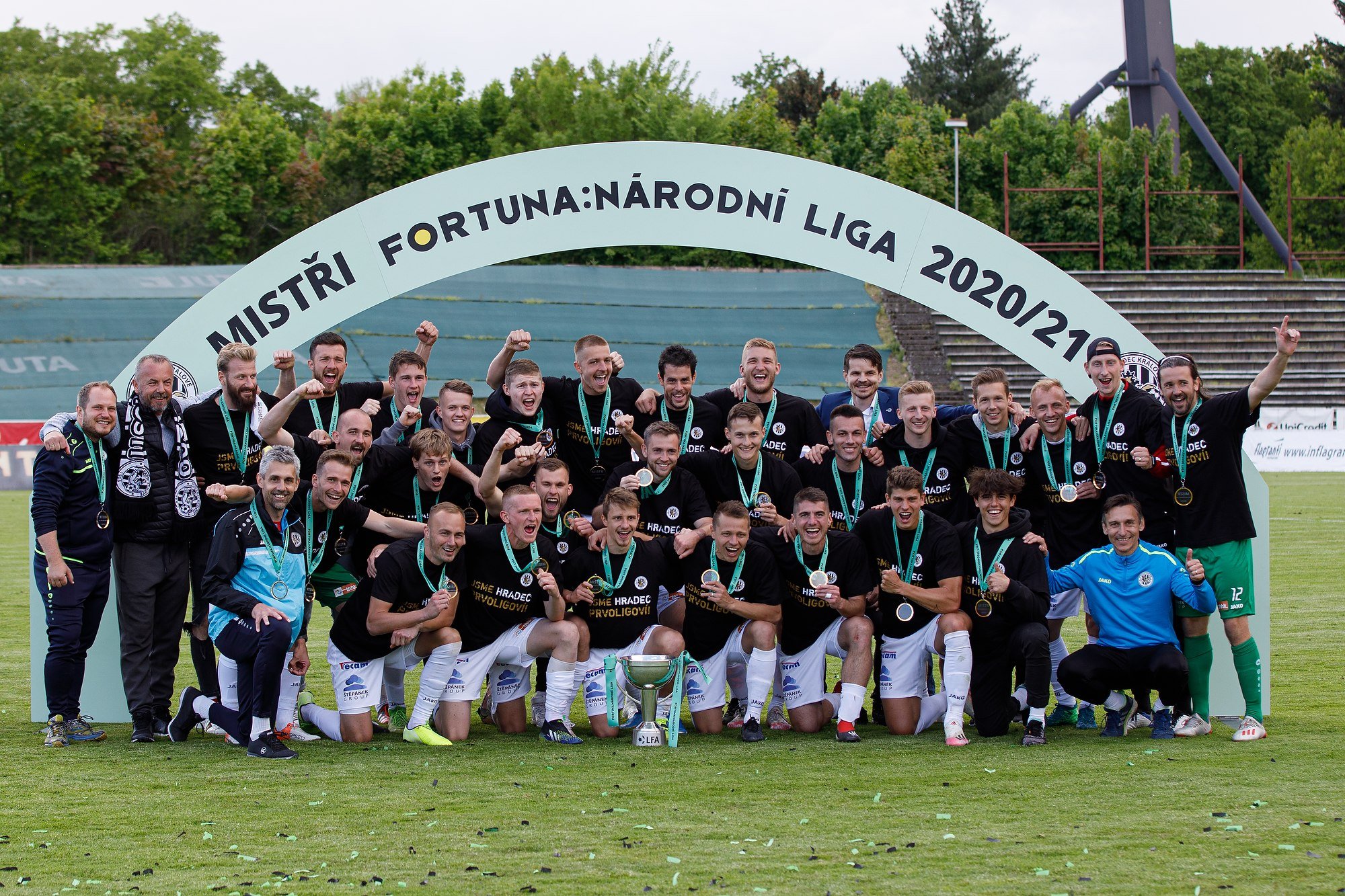 Závěr utkání se už dohrával za skandování a radosti na tribunách. Po závěrečném hvizdu přišlo na řadu loučení s Radimem Ottmarem, pro kterého si spoluhráči připravili hezké "parukové" překvapení. Hradecký kotel rovněž vyvolával kouče Zdenka Frťalu a děkoval mu za odvedenou práci. Došlo také k oficiálnímu ceremoniálu s předáváním medailí a poháru pro vítěze FORTUNA:NÁRODNÍ LIGY.