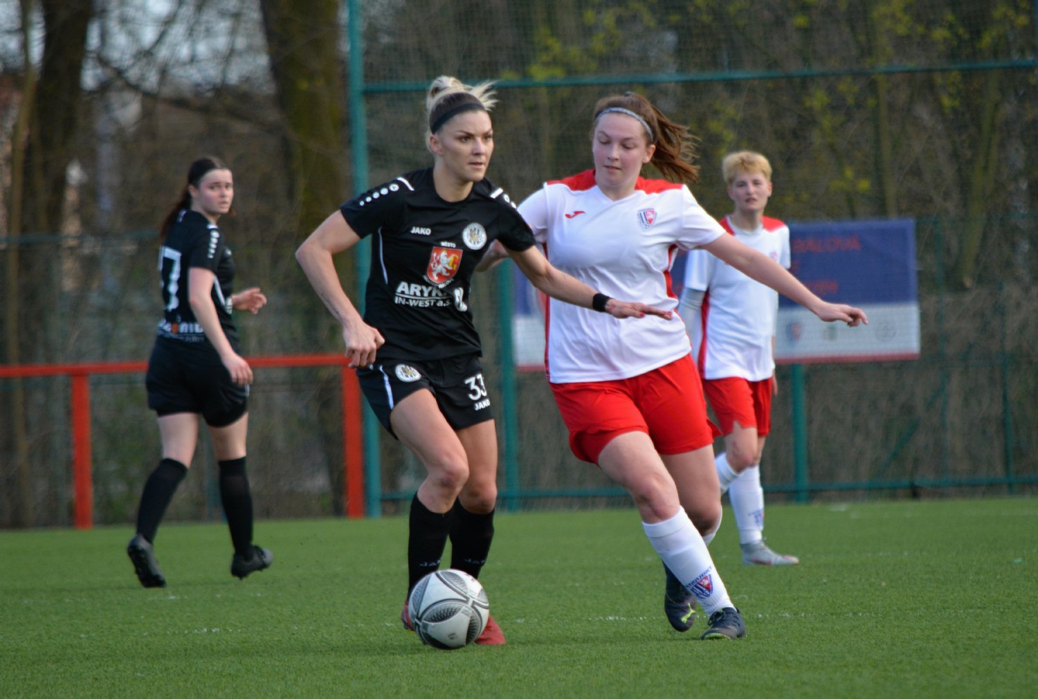 Inkasovaný gól hradecké fotbalistky probudil k větší aktivitě a až do konce zápasu byly lepším týmem. Po necelé půlhodině po přihrávce Karolíny Hrbkové efektní zakončení patičkou v podání Markéty Ringelové v brance neskončilo, stejně tak střely Terezy Portychové a opět Ringelové po úniku z pravé strany. Domácí hráčky hrozily z rychlých kontrů a těsně před přestávkou po průniku Kristýny Holcové těsně minula branku Ninczová.