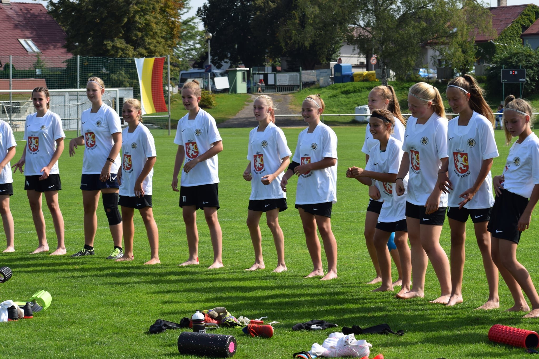 Radek Musil, trenér FC HK: Krajské derby probíhalo dle předpokladů. Soupeře jsme uzamkli na jejich polovině a bylo otázkou o kolik branek vyhrajeme. Už od první minuty jsme nastoupili se třemi útočnicemi. Určitě bych si představoval vyšší vítězství vzhledem k převaze. Zejména v první půli měla být naše hra přesnější a rychlejší. Někdy se hraje hůře proti slabším týmům. Zápas nás nepřipravil na přístí týden, kdy nás čeká soupeř z opačného konce tabulky. Až na Adélu Koudelovou všechny střelkyně si připsaly premiérové branky v lize starších žákyň. Stoperka, která v tomto zápase hrála v záloze a v útoku, vsítilia dokonce hattrick. Potěšil nás návrat několika hráček na hřiště po zranění. Dnes jsme vítězně pokřtili nové dresy.
