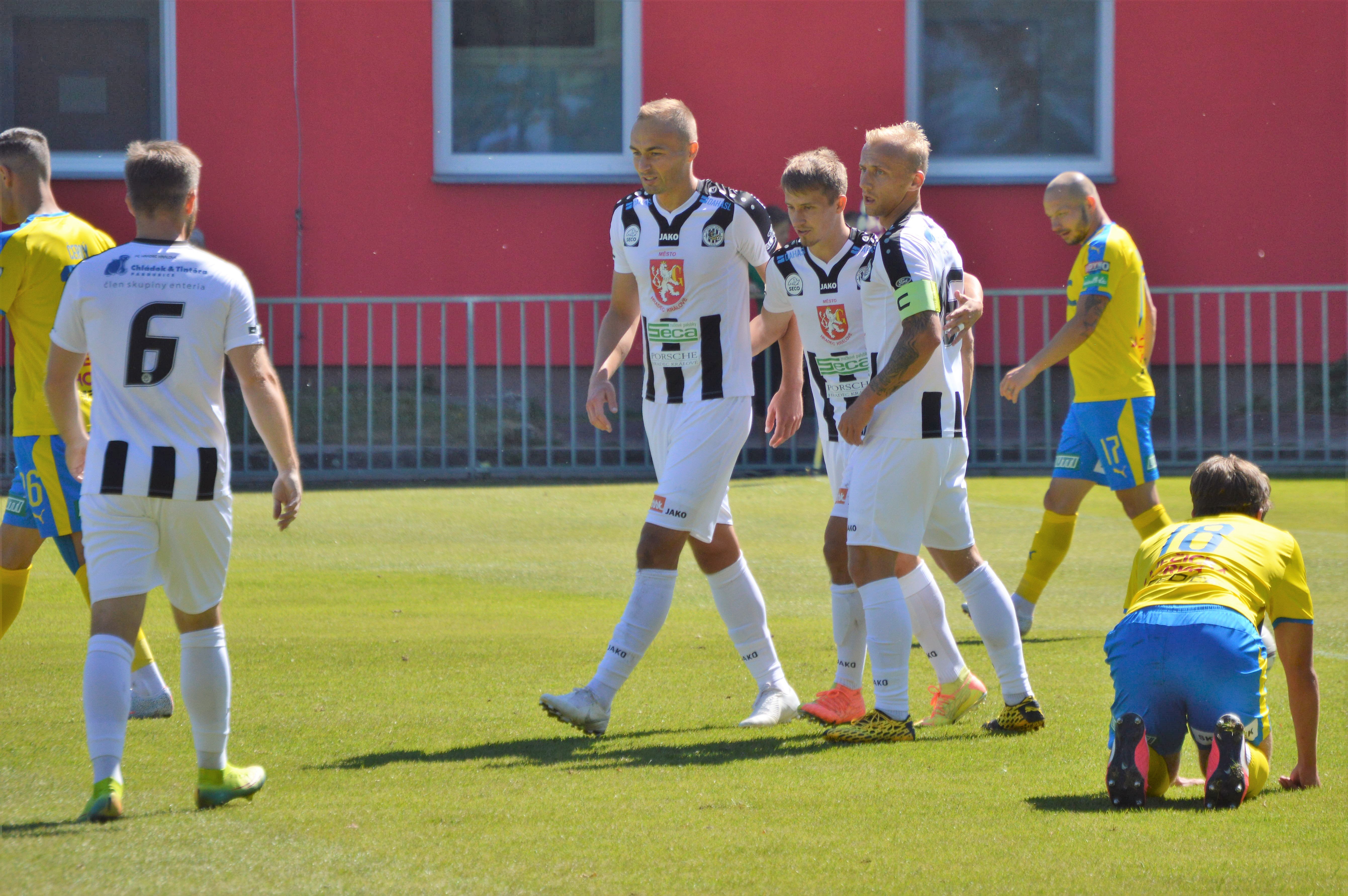 Votroci měli i po vedoucím gólu hru pod kontrolou. Jednou se už už dostával do šance Robert Jukl, ale vysoko skákající míč zkrotit nedokázal a druhý gól nepřidal. Ani závar po půl hodině hry, ve kterém měli prsty Jukl a Vlkanova, nepřinesl Hradeckým další gólovou radost. A také se střelou Jakuba Rady si Jan Plachý poradil.
