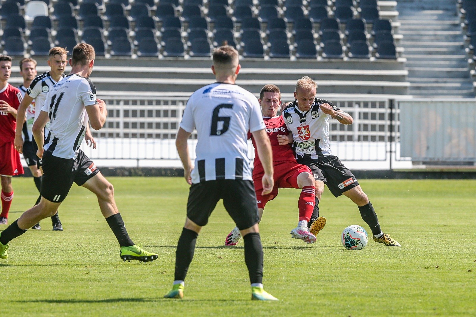 Do konce první půle Votroci soupeře výrazně zatlačili, střela Michala Leibla však skončila mimo bránu po teči obránce, dalekonosnou ránu Jiřího Kateřiňáka vytáhl skvělý Brát.